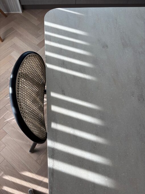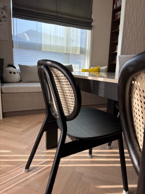 籐の背もたれが和にも洋にも、北欧テイストにも程良い存在感で調和していました。