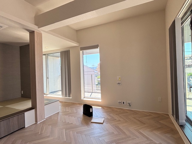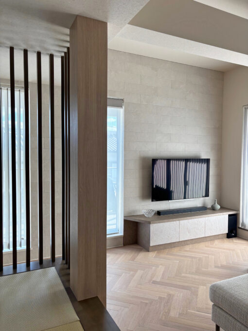 畳の間と同じ空間で、ヘリンボーンの床材。