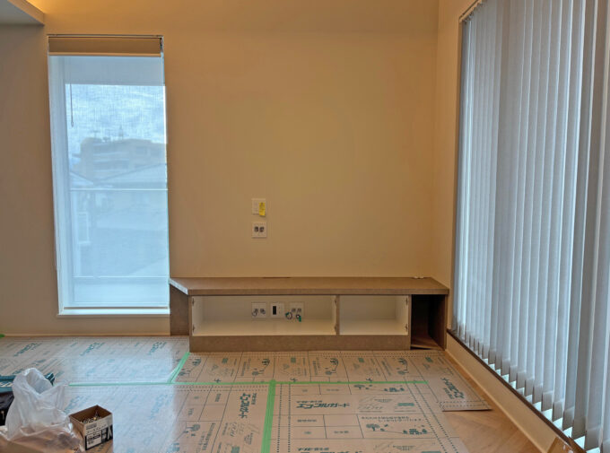 設置の日。テレビボード本体が付きました。